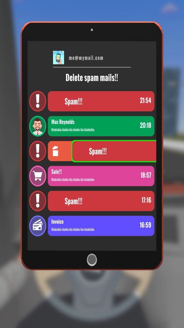 In Text And Drive!, multitasking isn’t just encouraged—it’s essential. Your phone buzzes constantly, sending a stream of incoming texts that you must read and reply to—all while navigating a busy, ever-changing city. The real challenge? Balancing the need to drive safely while responding to these messages as quickly as possible. Speed up too much, and you risk crashing into another car. Slow down too much, and you’ll fall behind in the race.